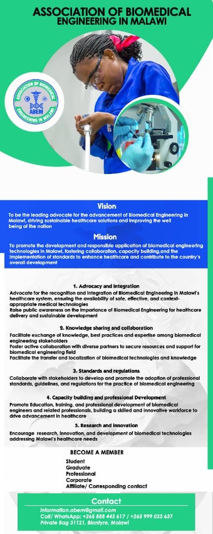 Registered on March 19th, 2023, the Association of Biomedical Engineering in Malawi (ABEM) is the premier professional body dedicated to the advancement of medical technology and engineering excellence in the "Warm Heart of Africa."