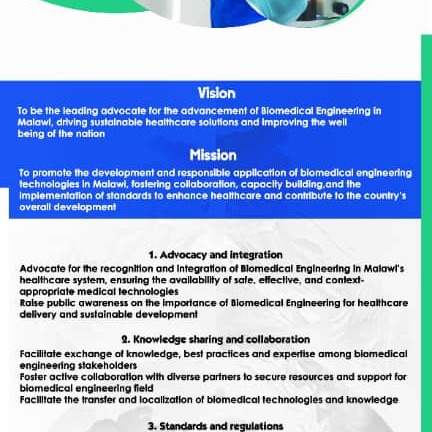 Encourage the highest level of professionalism, accountability, and technical excellence in the provision of medical technology and biomedical engineering services for the benefit of people in Malawi.